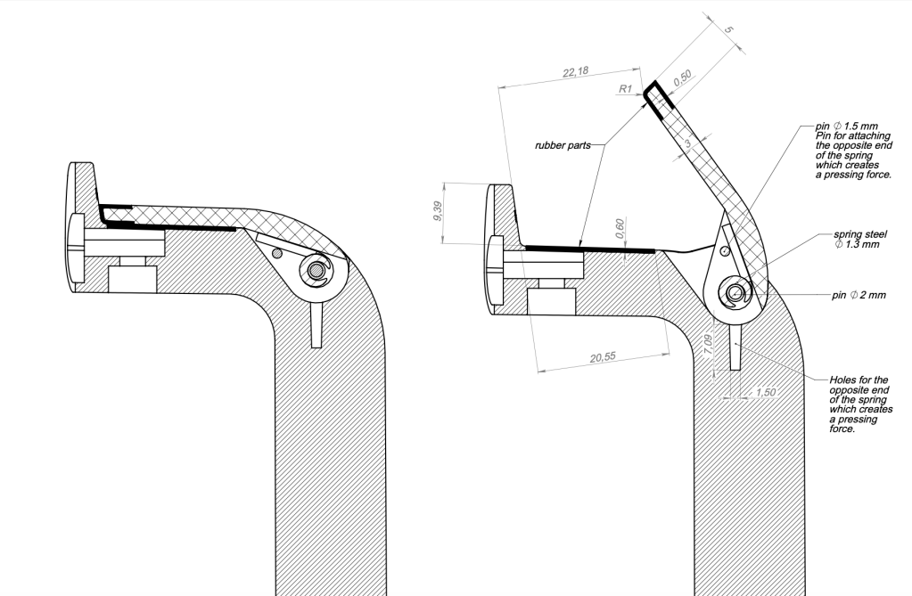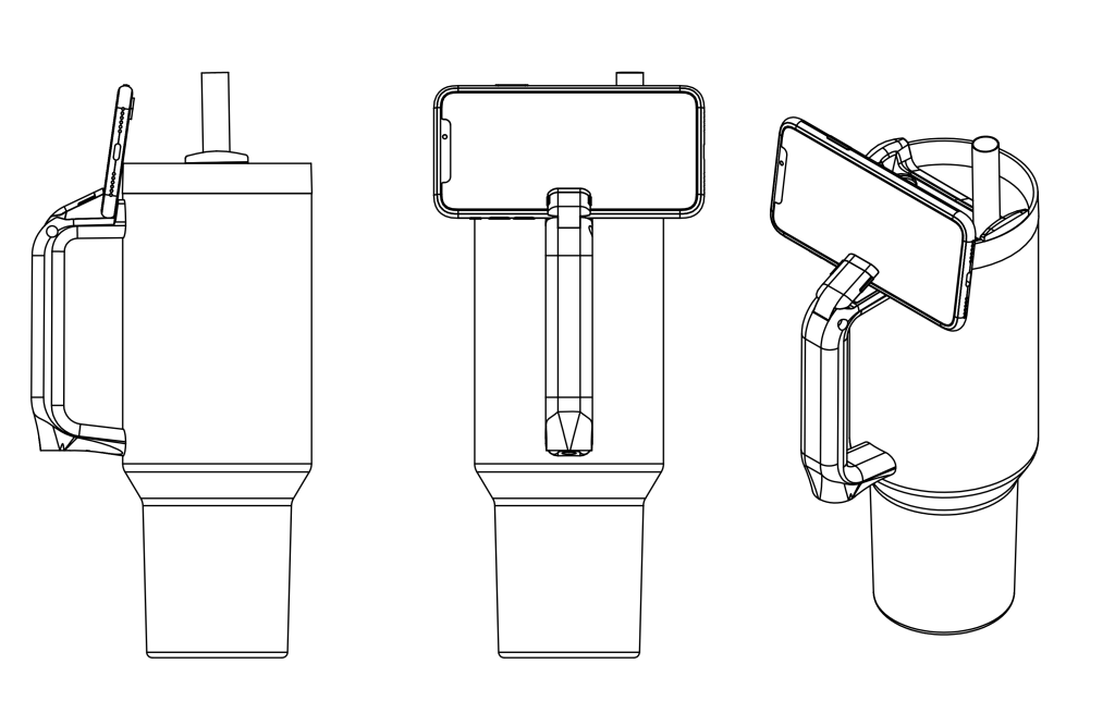 The handle will have a piece that can be lifted up and set down on a phone to hold it in place.
